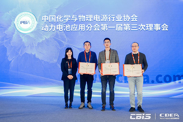 (動力電池應用分會秘書長張雨為新增專家委員會委員頒發(fā)證書)