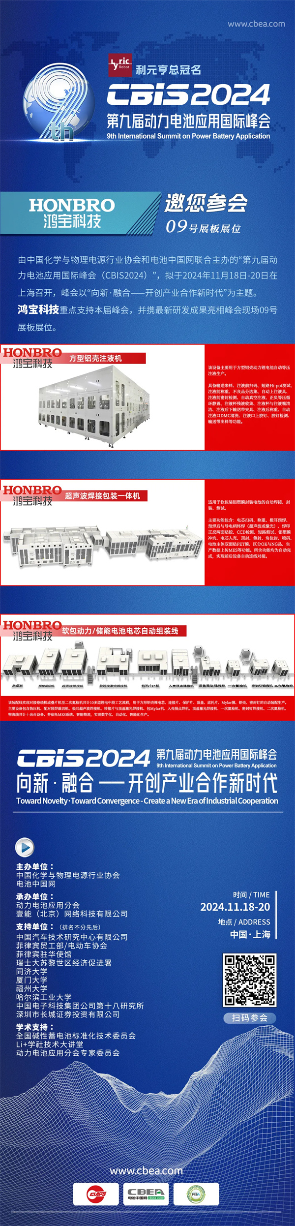 鴻寶科技邀您參加第九屆動力電池應用國際峰會(CBIS2024)