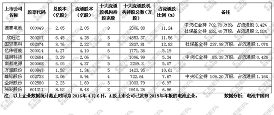截至2016年4月6日收盤,A股上市電池企業(yè)已公布2015年年報(bào)的有10家。