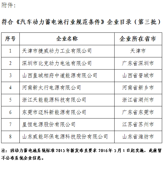附件:符合《汽車動力蓄電池行業(yè)規(guī)范條件》企業(yè)目錄(第三批)
